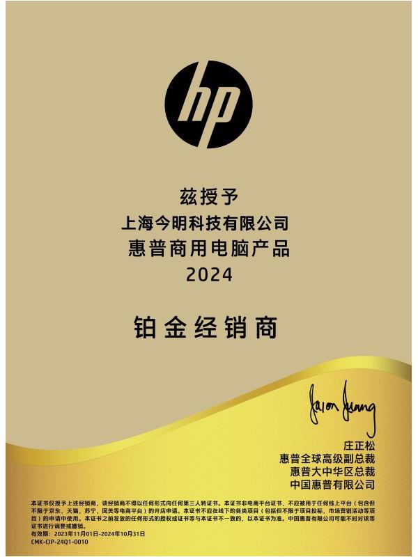 • 惠普商用電腦產品2025鉑金經銷商